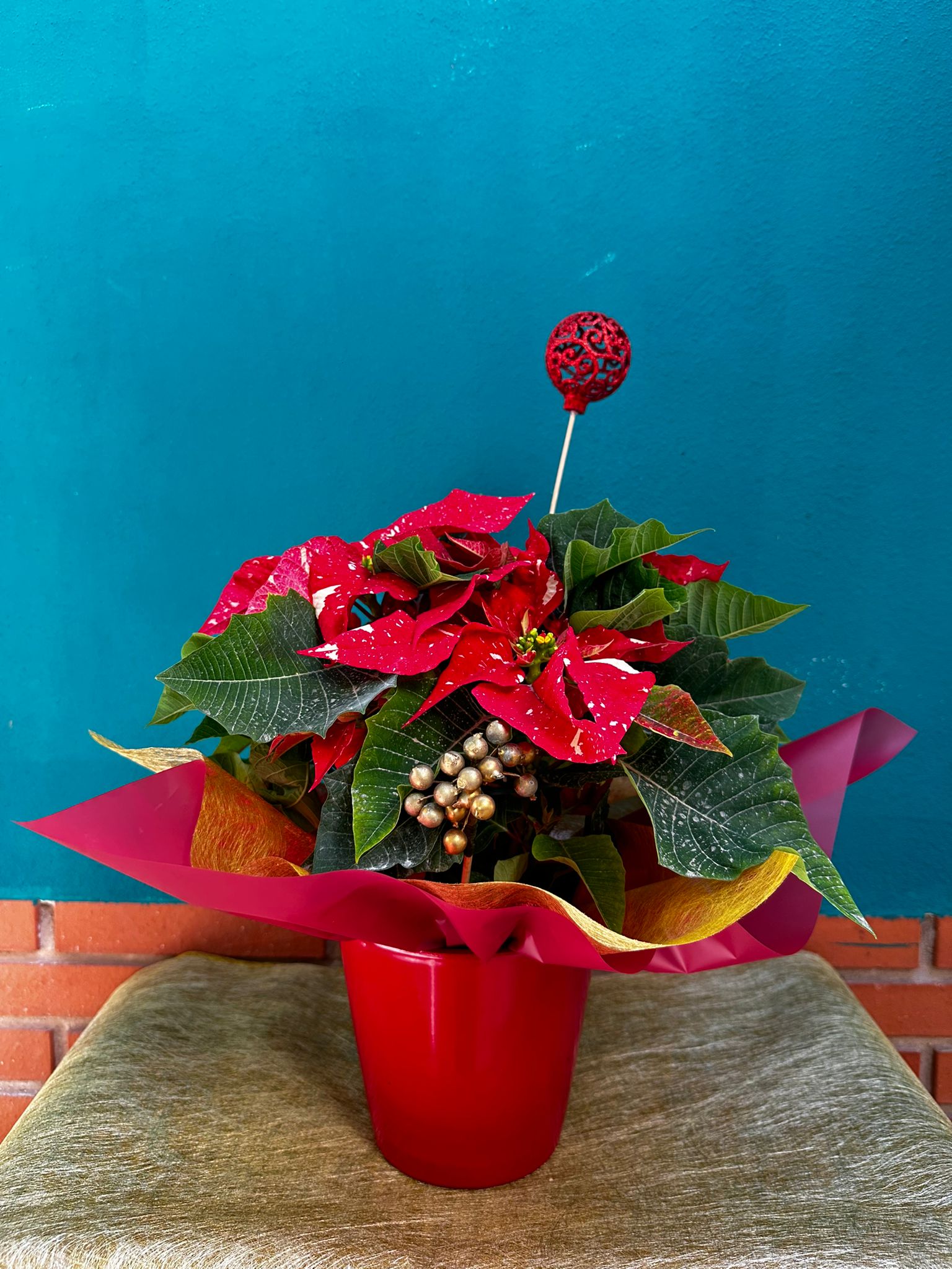 Ideal si buscas flores de Pascua en Málaga, poinsettias decoradas, plantas navideñas o regalos originales con entrega a domicilio en Málaga y alrededores.