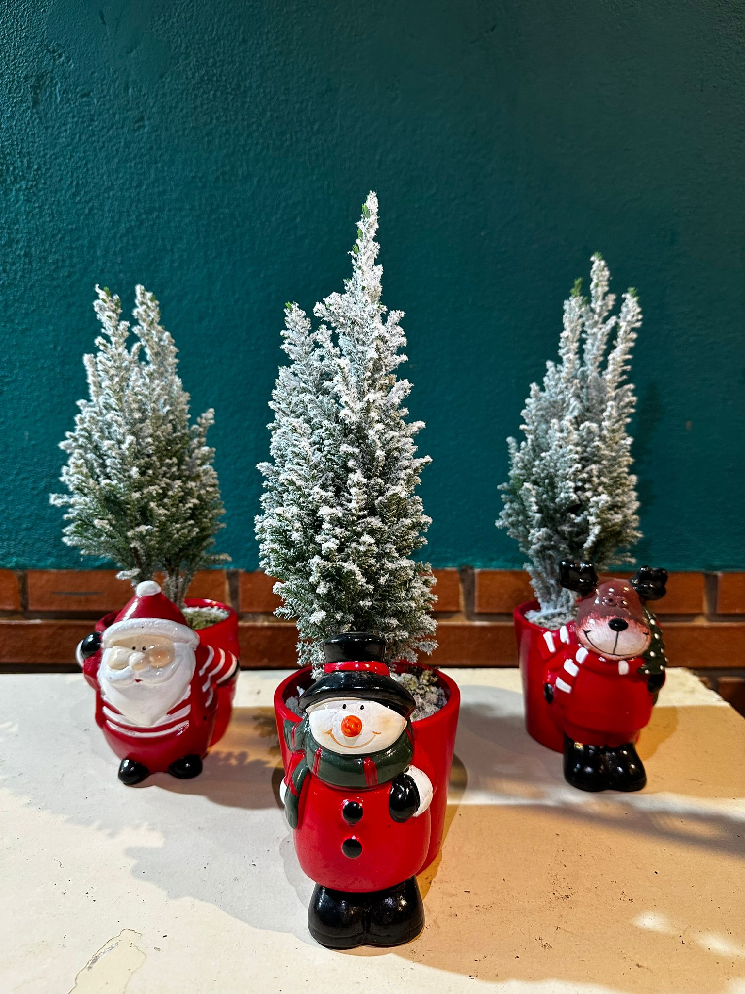 Este Pino Nevado Mini en Maceta Navideña es un detalle perfecto para decorar cualquier rincón de tu hogar, oficina o negocio durante la Navidad. Cada árbol viene presentado en una maceta cerámica con diseños festivos —Papá Noel, Muñeco de Nieve o Reno— que aportan un toque divertido y muy navideño.